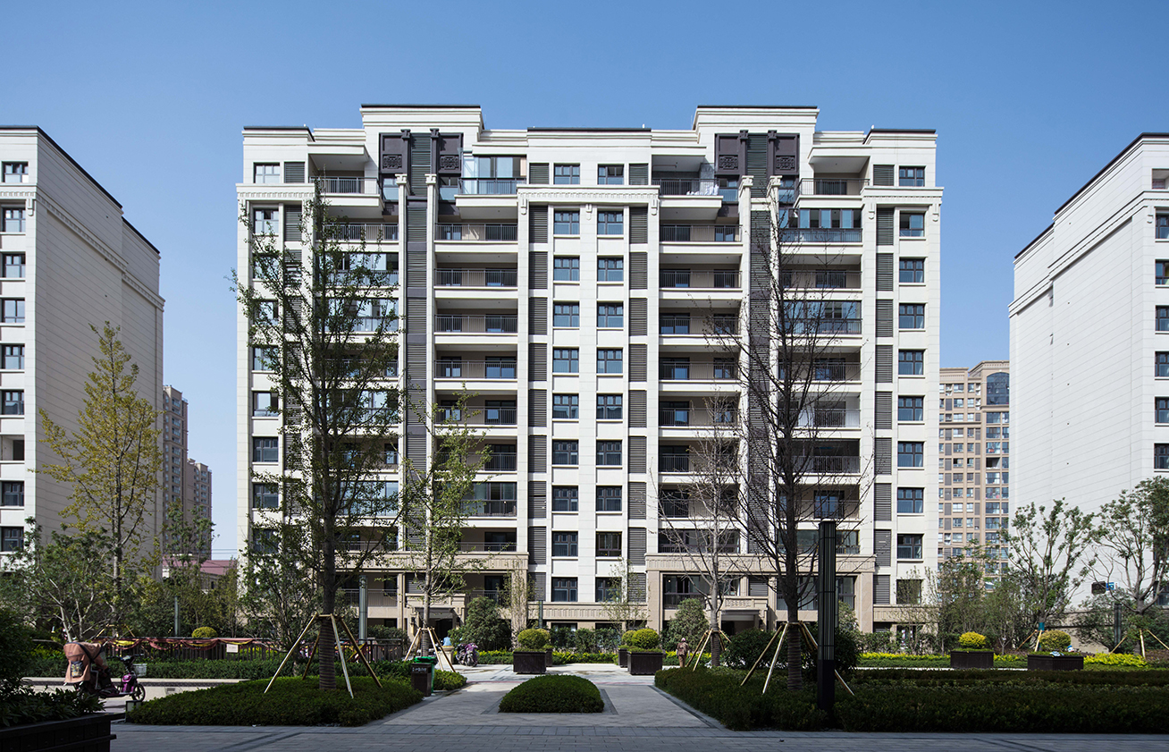 建筑采用现代简约风格,以简洁大块面的空间营造简洁高雅的艺术气息,竖向线条的反复使用塑造建筑的挺拔感。外立面呈中轴对称,经典三段式构图,凸显建筑端庄稳重的形象。